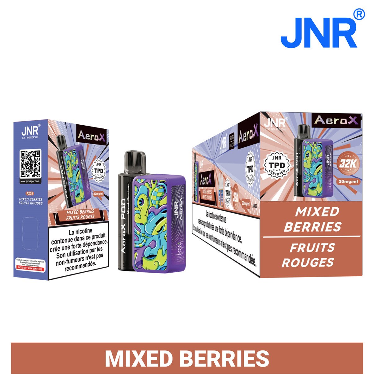 Die 15 Geschmacksrichtungen der elektronischen Zigarette JNR Aero X 32000 sind ausgesprochen fruchtig, mit einem frischen, süßen und belebenden Stil, der durch komplexe Mischungen von Fruchtnoten und einem eisigen Abgang verfeinert wird. Beerengeschmack dominiert diese Produktreihe, insbesondere mit «.« Blue Razz Cherry », « Blueberry Red Raspberry » und « Mixed Berries » und bietet damit eine große Auswahl für Liebhaber süß-säuerlicher Geschmacksrichtungen.