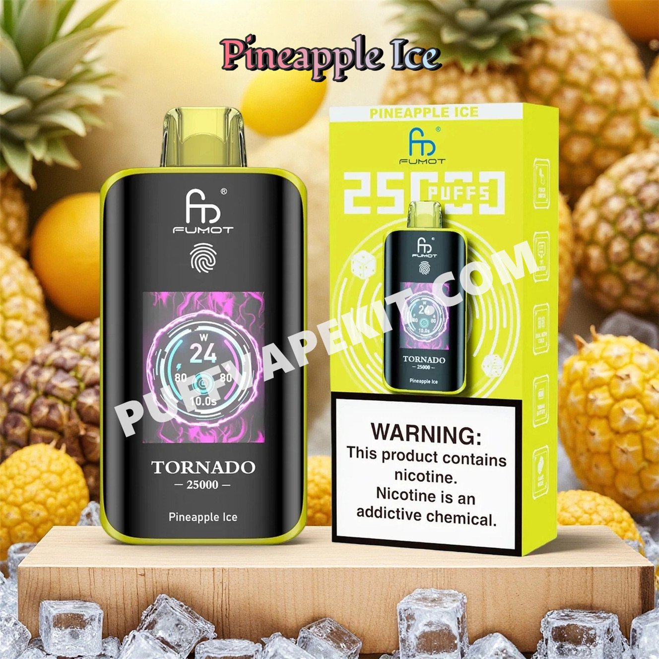 Jeder Zug bietet einen feinen Geschmack und ein stabiles Rauchvolumen, wodurch der Fumot RandM Tornado 25000 Pineapple Ice nicht nur für Anfänger geeignet ist, sondern auch für erfahrene Benutzer in Bezug auf Geschmack und Sauggefühl.