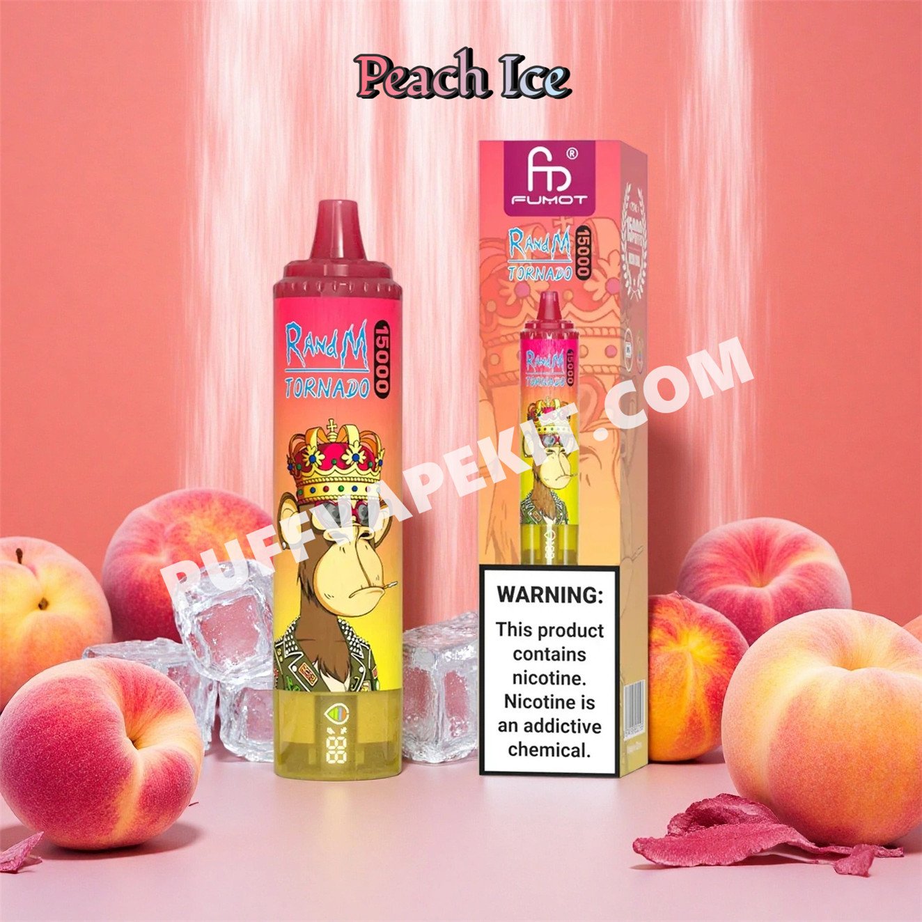 Dès la première inhalation de la cigarette électronique RandM Tornado 15000 Peach Ice, vous découvrirez la douceur naturelle d'une pêche juteuse.